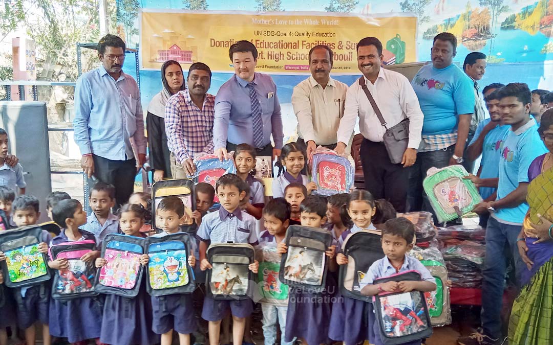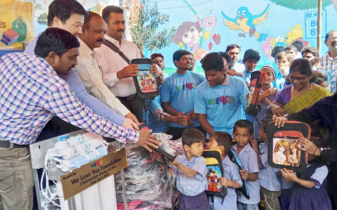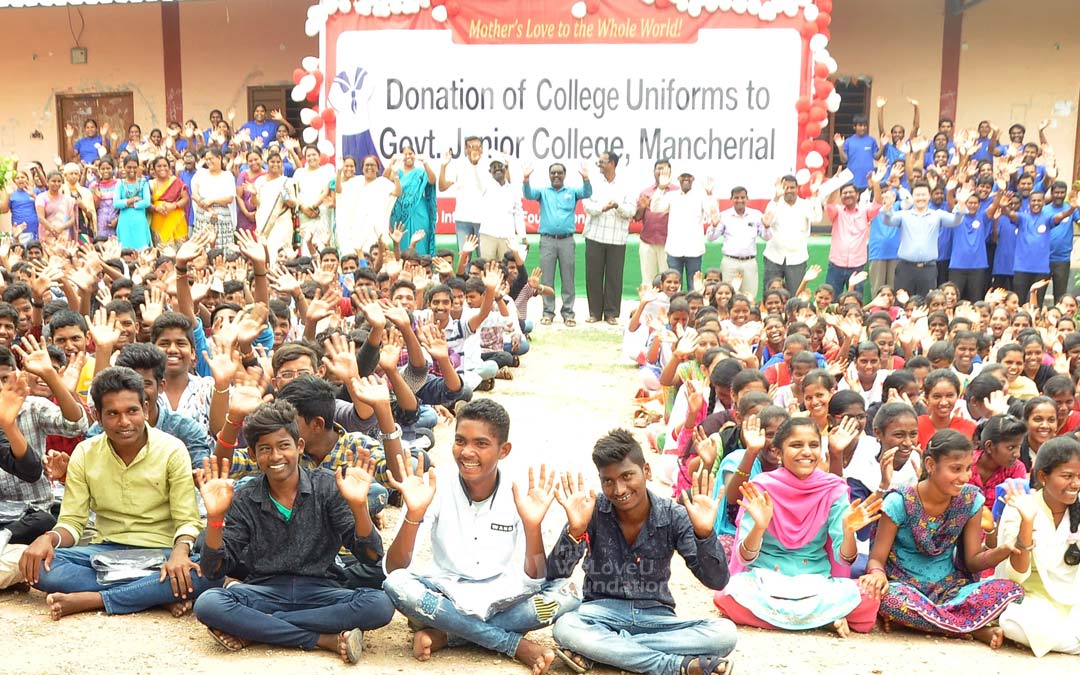2018년 8월 30일, 텔랑가나주 만체리알의 만체리알 주니어칼리지에서 위러브유의 교복 기증식이 열렸다. 우리나라의 고교 또는 대학 초년 과정에 해당하는 이 학교에는 11~12학년 500명이 다니는데, 11학년 학생의 상당수가 입학한 지 수개월이 지나도록 교복을 갖춰 입지 못하고 있었다.