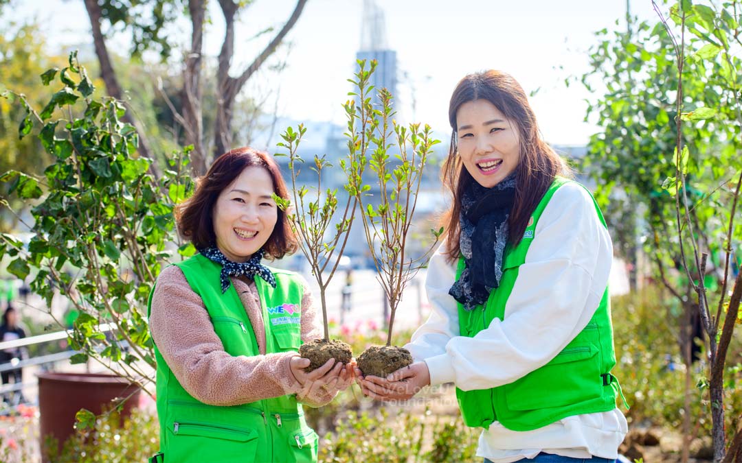 10월 29일, 완연한 가을 하늘 아래 위러브유 서울 동대문구 지역 회원 250여 명이 중랑천 휘경2수변공원에 모였습니다. 맘스가든 프로젝트를 통해 공원 산책로에 나무를 심기 위해서입니다.