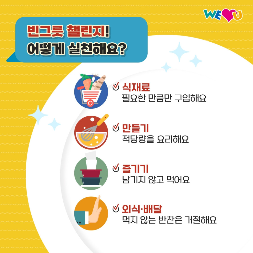 그릇을 깨끗하게 비우는 것은 우리의 건강뿐 아니라 환경까지 이롭게 합니다. 정말 행복한 미션입니다.