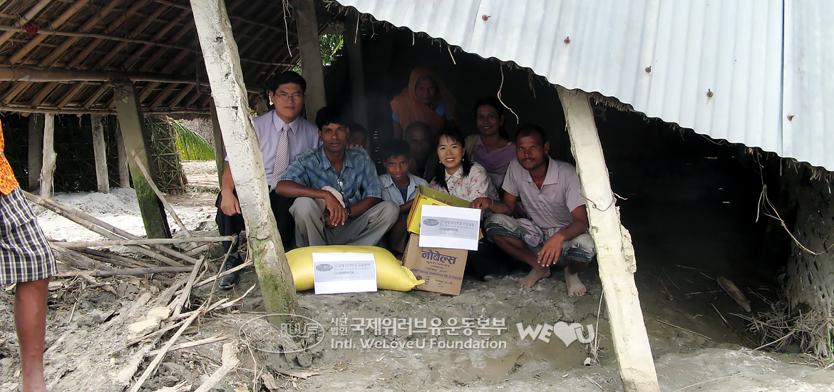 위러브유에서 트럭에 싣고 간 구호품은 쌀과 라면, 생수와 의약품이었다. 위러브유 김중락 이사, 김해숙 이사 등은 수해민들에게 직접 구호품을 전달하며 위로와 격려를 전했다. 양식도 양식이려니와 수인성 질병으로 인한 2차 피해를 막기 위해 맑은 물과 의약품도 절실했던 수재민들은 멀리 한국에서부터 찾아와 가장 필요한 도움을 준 위러브유 측에 환영과 감사의 인사를 전했다. 웃음 띤 얼굴로 활기차게 구호품을 나르는 수재민들에게서는 새 삶의 의지와 희망이 엿보였다.
