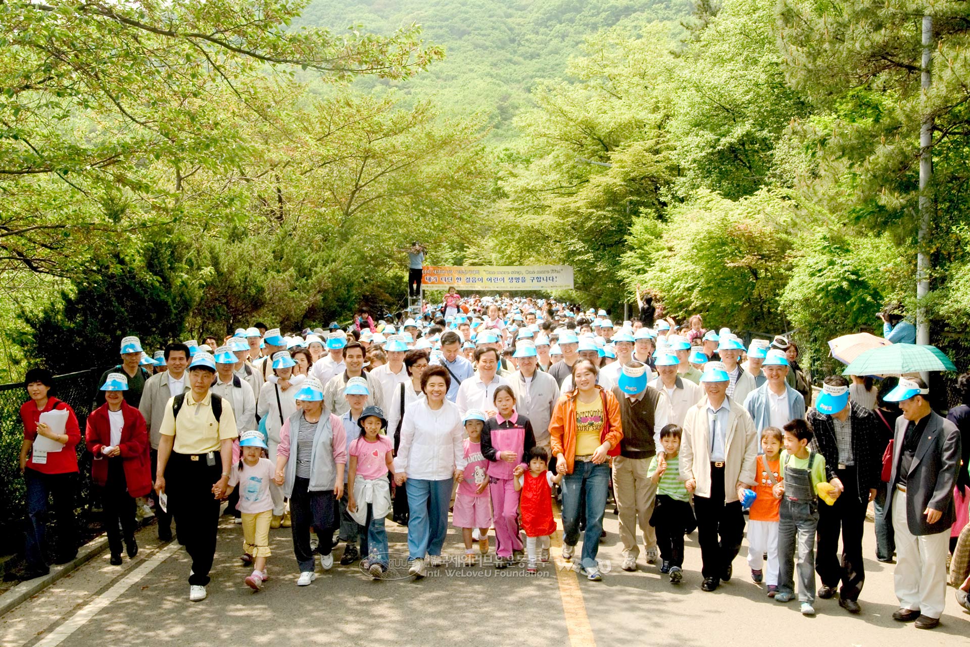 출발 직전 내린 보슬비로 한층 더 싱그러운 오월의 첫날, 라일락 향기 물씬 풍기는 남산 산책로에는 가족들이 속속 모여들었습니다. 신록처럼 생기에 넘쳐 깡충거리는 꼬마들과, 모처럼의 데이트에 나선 듯 들뜬 얼굴의 엄마, 조금 쑥스러운 표정으로 가족을 챙기는 아빠. 이들은 심장병 어린이를 돕기 위해 ‘한 걸음 더, 한 생명 더(One More Step, One More Life)!’라는 한마음으로 모인 새생명복지회 회원들입니다.