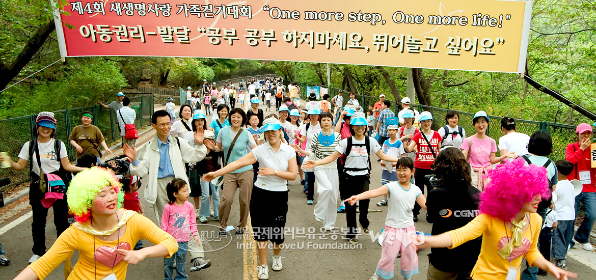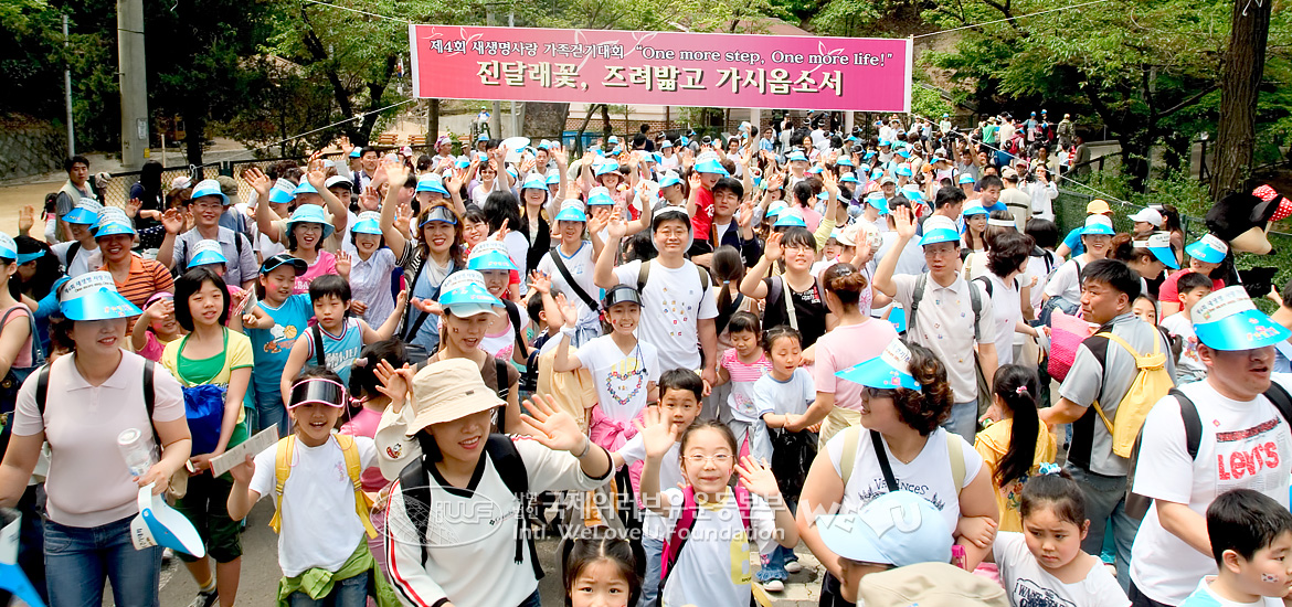 새생명복지회와 세이브더칠드런(구 한국어린이보호재단)이 공동으로 개최하는 새생명사랑 가족걷기대회는 2002년부터 해마다 개최되어 올해로 6회째를 맞았습니다. 장길자 회장님은 이번 대회의 취지에 대해 “오월 가정의 달을 맞아 난치병 어린이들을 돕고 지구촌 가족들의 화목을 다지며 위기에 처한 가정에 희망이라는 메시지를 전하기 위해서”라고 설명하셨습니다. 청소년보호위원회, 서울특별시, 네스퀵한국네슬레(주), 세종병원 등이 후원한 이날 제6회 대회에는 회원 가족 3400여 명을 비롯해서 약 4천 명이 참가했습니다.