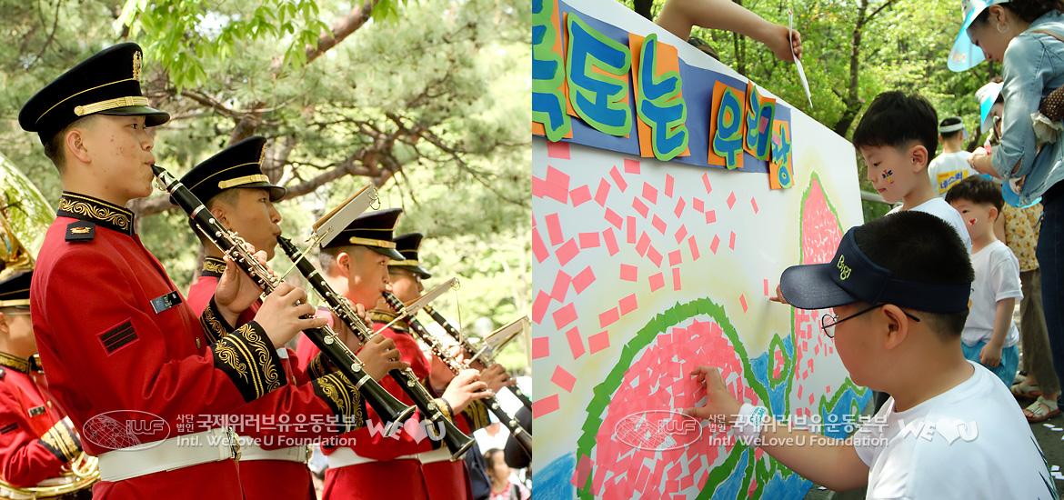 대회 도착지점인 백범광장에서는 수도방위사령부의 군악대가 경쾌한 연주로 가족들을 맞아주었습니다. 참가자들은 준비해 간 점심 도시락을 먹으며 가족 간에 오붓한 시간을 보냈습니다. 페이스페인팅으로 한껏 멋을 내고, 무료로 나눠주는 솜사탕과 풍선을 받아든 아이들은 ‘방귀대장 뿡뿡이’ 같은 캐릭터 인형과 사진을 찍거나 또래끼리 어울려 뛰놀며 마치 어린이날처럼 신나는 하루를 보냈습니다.