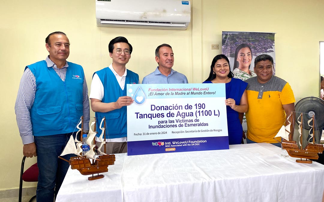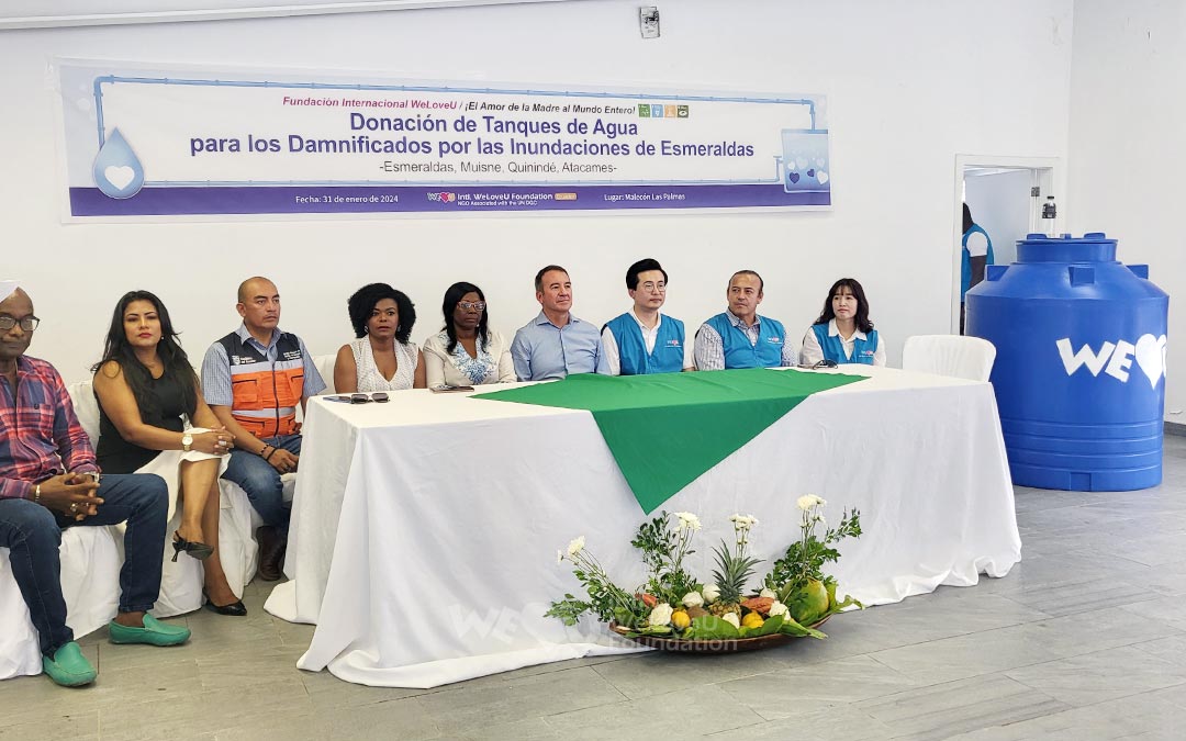 국가적 재난에 주한 에콰도르 대사관 측에서 위러브유에 도움을 요청했습니다. 8월 24일, 국제위러브유 장길자 명예회장과 이사진, 카를로스 에두아르도 에마누엘레 주한 에콰도르 대사와 공관차석 등 대사관 관계자가 참석한 가운데 에스메랄다스주 수재민을 돕기 위한 성금 전달식이 분당 홀리프린스에서 진행되었습니다.