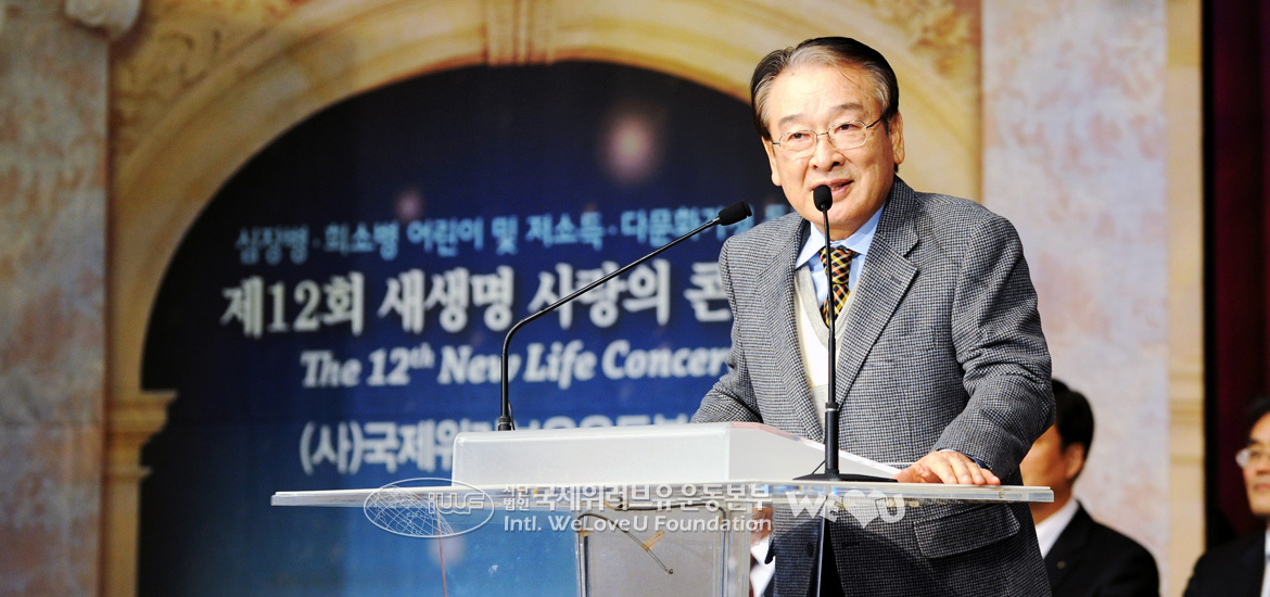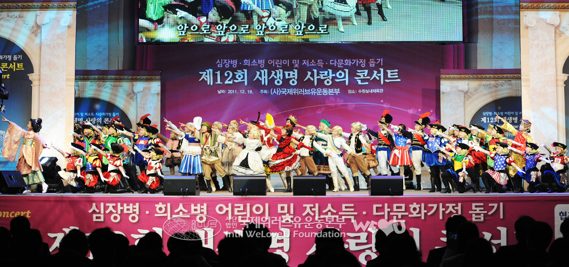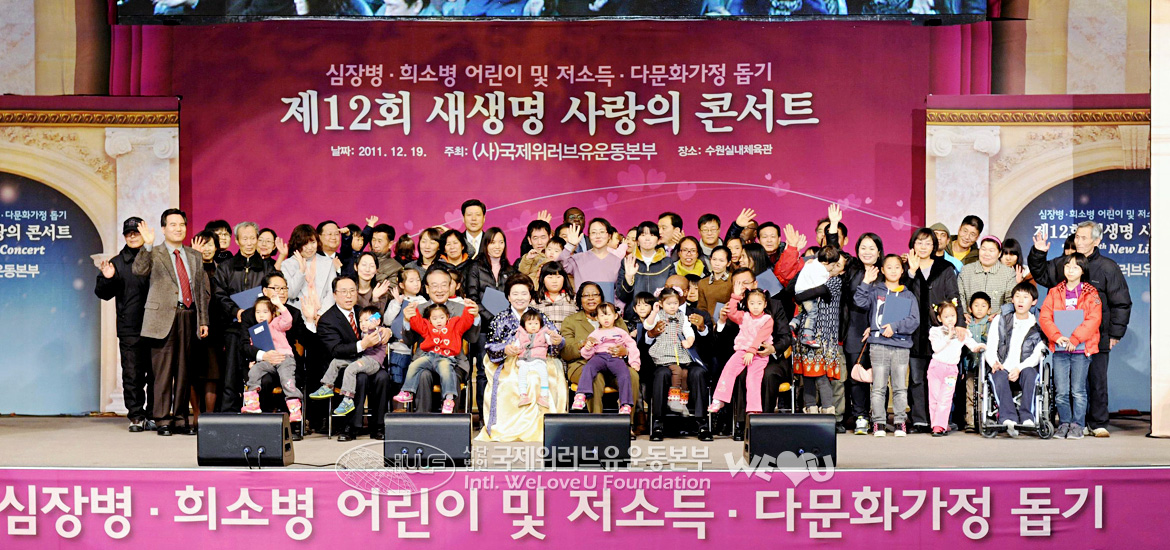 Để giúp đỡ các trẻ em đang chịu đau đớn vì bệnh tật, các gia đình có thu nhập thấp và các gia đình đa văn hóa, Tổ chức WeLoveU Quốc tế đã tổ chức Hòa nhạc Tình yêu Sự sống mới lần thứ 12 với sự tài trợ của thành phố Seoul, tỉnh Gyeonggi, thành phố Suwon và Bệnh viện Sejong. Buổi hòa nhạc bắt đầu vào 7 giờ tối với khoảng 9000 người lấp đầy địa điểm tổ chức sự kiện. Tại sự kiện, Chủ tịch Zahng Gil Jah, Tổng giám đốc Lee Kang Min cùng ban giám đốc Tổ chức WeLoveU, và nhiều người từ mọi lĩnh vực trong xã hội như các nhà ngoại giao tại Hàn Quốc, lãnh đạo chính quyền địa phương, cán bộ phụ trách phúc lợi xã hội, v.v… đã cùng tham dự với các hội viên. Đối với các nghệ sĩ, cuối năm là thời gian đặc biệt bận rộn, nhưng để tham dự sự kiện ý nghĩa này, Chủ tịch tài trợ – diễn viên Lee Soon Jae, Đại sứ thiện chí Kim Seong Hwan, Đại sứ quảng bá – ca sĩ Lee Seung Hoon, cùng các ca sĩ như Kim Hyeung Guk, Baek Mi Hyeon, Kim Je Hoon, Yun Tae Gyu, Im Chang Jae, v.v… đều vui vẻ gác lại lịch trình bận rộn để góp mặt và làm sáng bừng sân khấu.