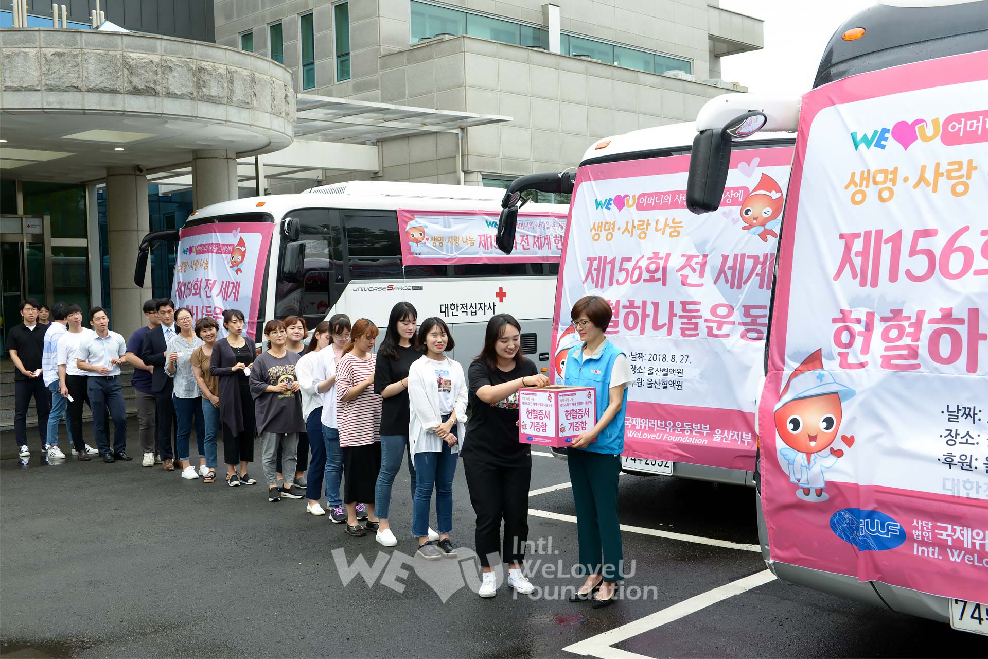 Vào ngày 27 tháng 8, “Vận động Hiến máu Một Hai khắp thế giới lần thứ 156” đã được tổ chức tại Ulsan, Hàn Quốc. Các hội viên ở Ulsan tham gia vào phụng sự chia sẻ sự sống bằng một tấm lòng.
