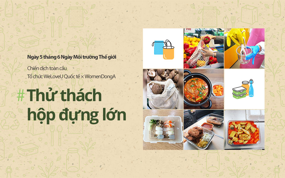 Đó là câu chuyện về “Thử thách hộp đựng lớn“. Thử thách hộp đựng lớn là chiến dịch môi trường toàn cầu mà Tổ chức WeLoveU Quốc tế cùng tiến hành với Woman Donga. Đây là chiến dịch lần thứ hai nối tiếp “Thử thách Phân loại Rác thải” vào năm ngoái, được tiến hành từ ngày 25 tháng 5 nhân dịp Ngày Môi trường Thế giới (Ngày 5 tháng 6) cho đến ngày 17 tháng 6. Mục đích là để khuyến khích mọi người trên khắp thế giới coi trọng giá trị của môi trường và tham gia vào việc hồi sinh môi trường từ cuộc sống hàng ngày. Thử thách hộp đựng lớn không phải là phong trào môi trường lớn lao gì. Nếu bạn có hộp đựng, bất cứ ai, bất cứ nơi nào cũng có thể làm được. Mang theo hộp đựng, đưa ra hộp đựng, và nhận lấy thứ mình cần.