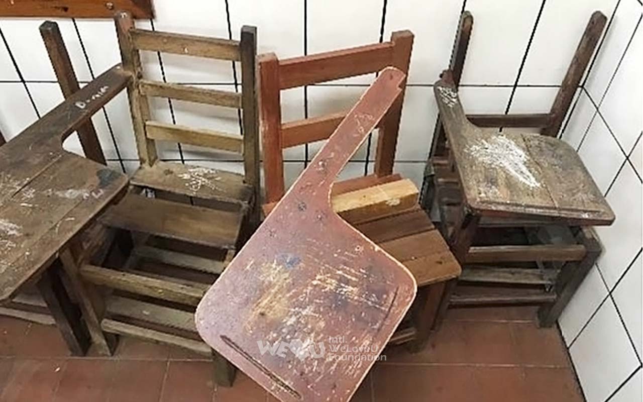 Tình hình là thế này nhưng vật giá cao ngất ngưởng nên không đổi được bàn ghế. Khi biết tình hình, Tổ chức WeLoveU đã đến thăm trường vào ngày 27/12/2018 để trao đổi cụ thể phương hướng hỗ trợ với hiệu trưởng, và quyết định trao tặng bàn ghế.