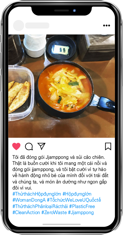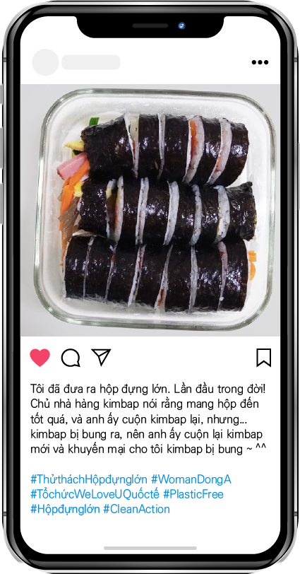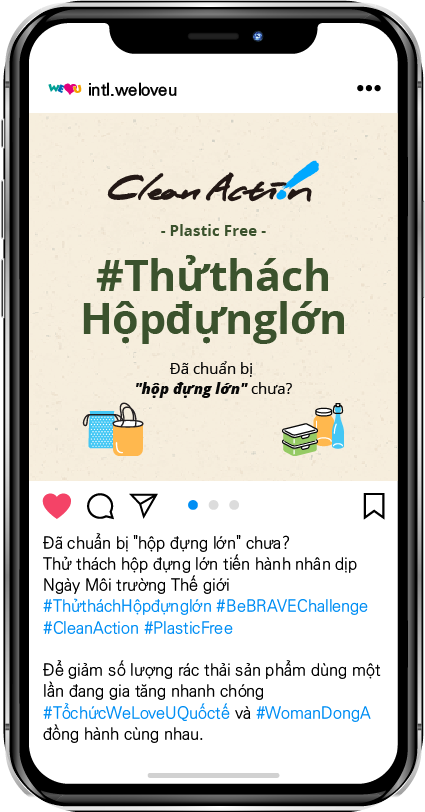 Giờ nói NO với các sản phẩm dùng một lần! Tổ chức WeLoveU Quốc tế và WomanDongA đang tiến hành #ThửtháchHộpđựnglớn để giảm lượng rác thải dùng một lần đang gia tăng nhanh chóng.