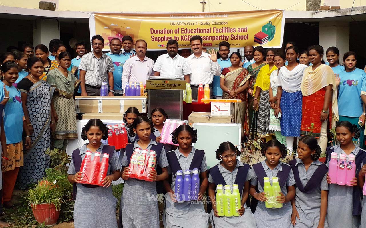 Trường KGBV Hasanparthy là trường trung học công lập dành cho nữ sinh ở các vùng nông thôn có điều kiện giáo dục kém, có 300 học sinh từ lớp 6 đến lớp 10 theo học. Vào ngày lễ trao tặng, các hội viên Tổ chức WeLoveU đã trao khoảng 70 máy lọc nước và bình nước cho trường học. Họ cũng tặng các thiết bị như bảng đen, quạt và kính hiển vi để lắp đặt trong các lớp học để học sinh có thể học tập trong môi trường tốt hơn.
