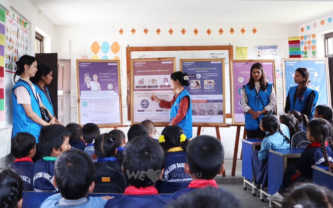 Thời gian giáo dục đặc biệt đã được tổ chức tại ba trường học ở thủ đô Kathmandu của Nepal và thành phố Bhaktapur gần đó. Thông qua chương trình giáo dục của WeLoveU School, buổi giáo dục vệ sinh đã được tiến hành và các vật dụng vệ sinh cũng được gửi đến các học sinh.
