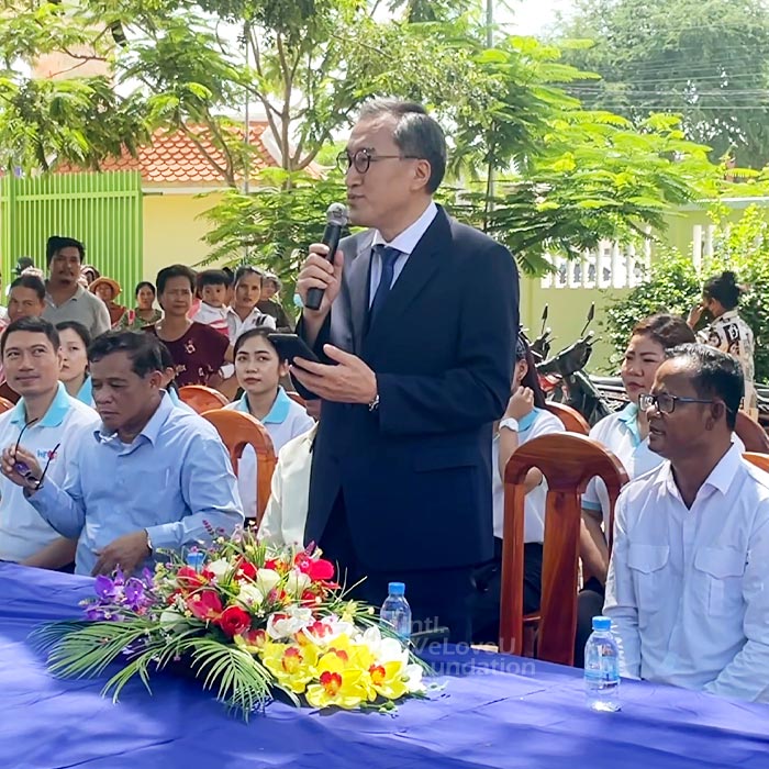 “Thay mặt tất cả giáo viên và học sinh, tôi xin cảm ơn Chủ tịch Zahng Gil Jah. Chúng tôi thực sự vui mừng vì Tổ chức WeLoveU Quốc tế đã trao tặng đồ dùng học tập cho các học sinh của chúng tôi.”