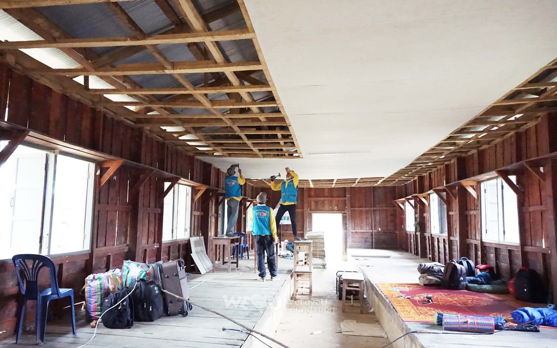 Từ ngày 1 tháng 11, họ bắt đầu thi công xây dựng mới một phòng tắm ngoài trời kiêm nơi giặt giũ ở phía dưới bể nước. Sau năm ngày thi công, các đường ống dẫn nước từ bồn nước đến nhà tắm và vòi hoa sen đã được sửa chữa và thay mới. Bây giờ các học sinh có thể thỏa thích sử dụng nước trong một cơ sở sạch sẽ. Các học sinh và giáo viên cũng chung sức giúp đỡ trong suốt 9 ngày thi công.