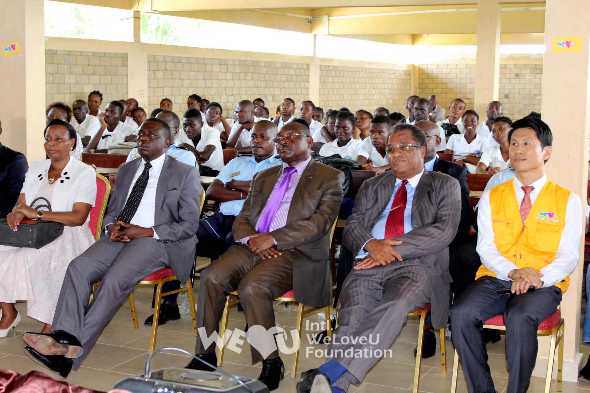 Roger Valère Ayimambenwe – Thị trưởng Lambaréné diễn thuyết rằng “Giáo dục là ngành quan trọng không được thiếu trên thế giới vì trẻ em và tương lai của nhà nước. Hoạt động thể này phải được khuyến khích vì hiệp lực bền vững của Quỹ WeLoveU và Lambaréné.”
