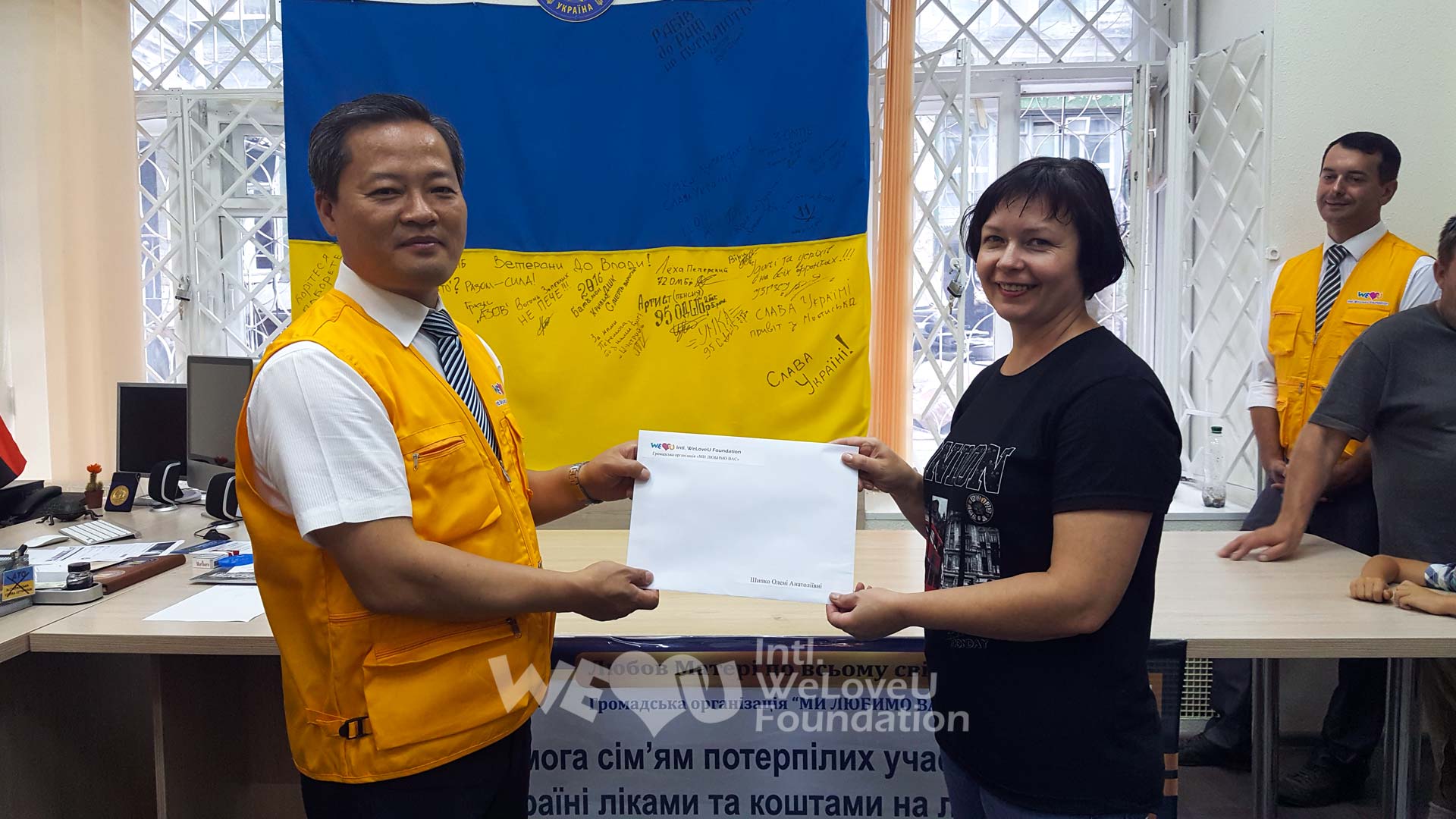 Theo đó, Tổ chức WeLoveU phối hợp với Trung tâm hỗ trợ chống khủng bố, quyết định tiến hành dự án chi viện phí y tế và thuốc để chia sẻ hy vọng cho gia đình của người tham chiến Ukraine. Vào ngày 17 tháng 8, lễ trao tặng của Tổ chức WeLoveU đã được tổ chức tại Trung tâm hỗ trợ chống khủng bố Thành phố Kyiv để hỗ trợ chi phí y tế cho 3 gia đình cựu chiến binh.