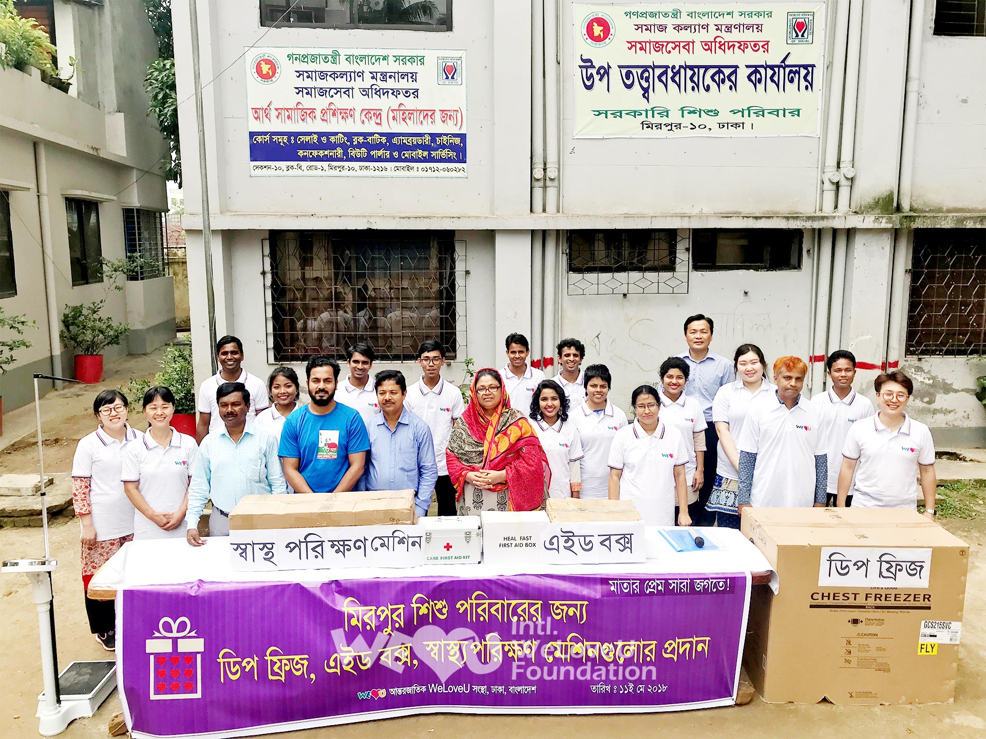 Từ ngày 4 đến ngày 11/5, Quỹ WeLoveU Quốc tế chi viện thuốc và dụng cụ y tế vì sinh hoạt khỏe mạnh của các trẻ em ở Cô nhi viện Mirpur nằm ở Dhaka, Bangladesh.