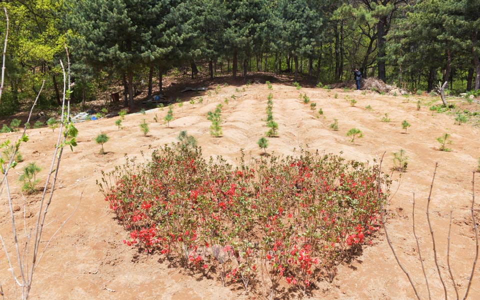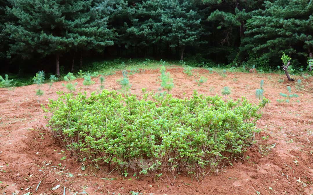 So với ba tháng trước, cây giống vẫn tích lũy chất dinh dưỡng ngay cả giữa đám cỏ dại và lớn lên. Các cây đỗ quyên đã mọc ra những chiếc lá to ở nơi hoa đã tàn, còn những cây thông thì cao lên chừng một gang tay.