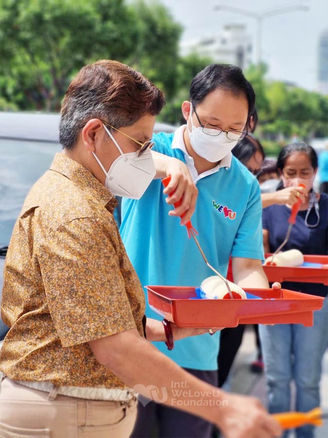 Họ phủi bụi tích tụ trong từng lớp học và sửa chữa những đồ vật bị hỏng để học sinh không cảm thấy bất tiện khi trở lại trường. Tổ chức WeLoveU Quốc tế (sau đây gọi là “WeLoveU”) đã giúp cải thiện môi trường giáo dục của nhà trường. Họ đã sơn lại bức tường dài 100 mét đã không được chăm sóc để tạo ra bầu không khí tươi mới.