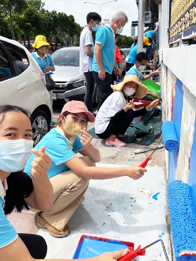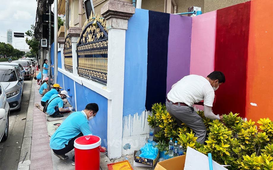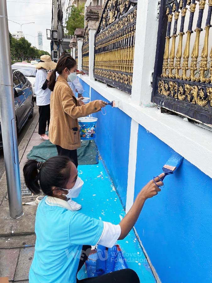 Vào sáng ngày 8 tháng 5, 25 thành viên WeLoveU đã có mặt tại trường. Một tay cầm sơn, một tay cầm cọ hoặc con lăn, họ nhanh chóng bắt đầu công việc.