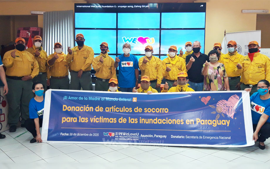 Các hội viên Tổ chức WeLoveU Quốc tế Paraguay và Asuncion đã đứng ra giúp đỡ người dân Asuncion có nhà cửa bị hư hại do mưa lớn trong đợt bùng phát Covid-19. Ban đầu, WeLoveU dự định hỗ trợ phòng chống dịch bệnh Covid-19, nhưng sau đó đã chuyển sang chuẩn bị vật phẩm cứu trợ cho các nạn nhân mưa lớn theo đề nghị của Trụ sở Đối phó An toàn và Thảm họa Trung ương Paraguay. Vào ngày 30 tháng 12, lễ trao tặng 60 tấm đệm đơn giúp các nạn nhân có giấc ngủ thoải mái và vật liệu lợp mái để sửa chữa mái nhà đã được tổ chức tại Trụ sở Đối phó An toàn và Thảm họa Trung ương. Với sự tham dự của trưởng phòng hỗ trợ thảm họa, các lãnh đạo của phòng, 16 nhân viên khắc phục hậu quả thảm họa và hỏa hoạn và 7 hội viên WeLoveU, lễ chuyển giao được tổ chức là khoảng thời gian ý nghĩa để suy ngẫm về tầm quan trọng của việc giúp đỡ những người hàng xóm gặp nguy hiểm.