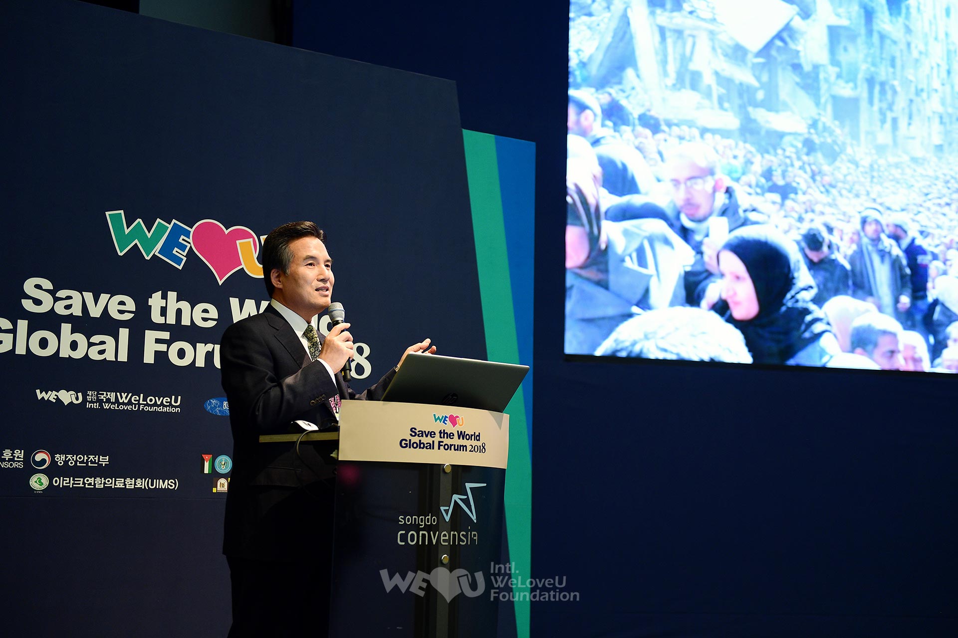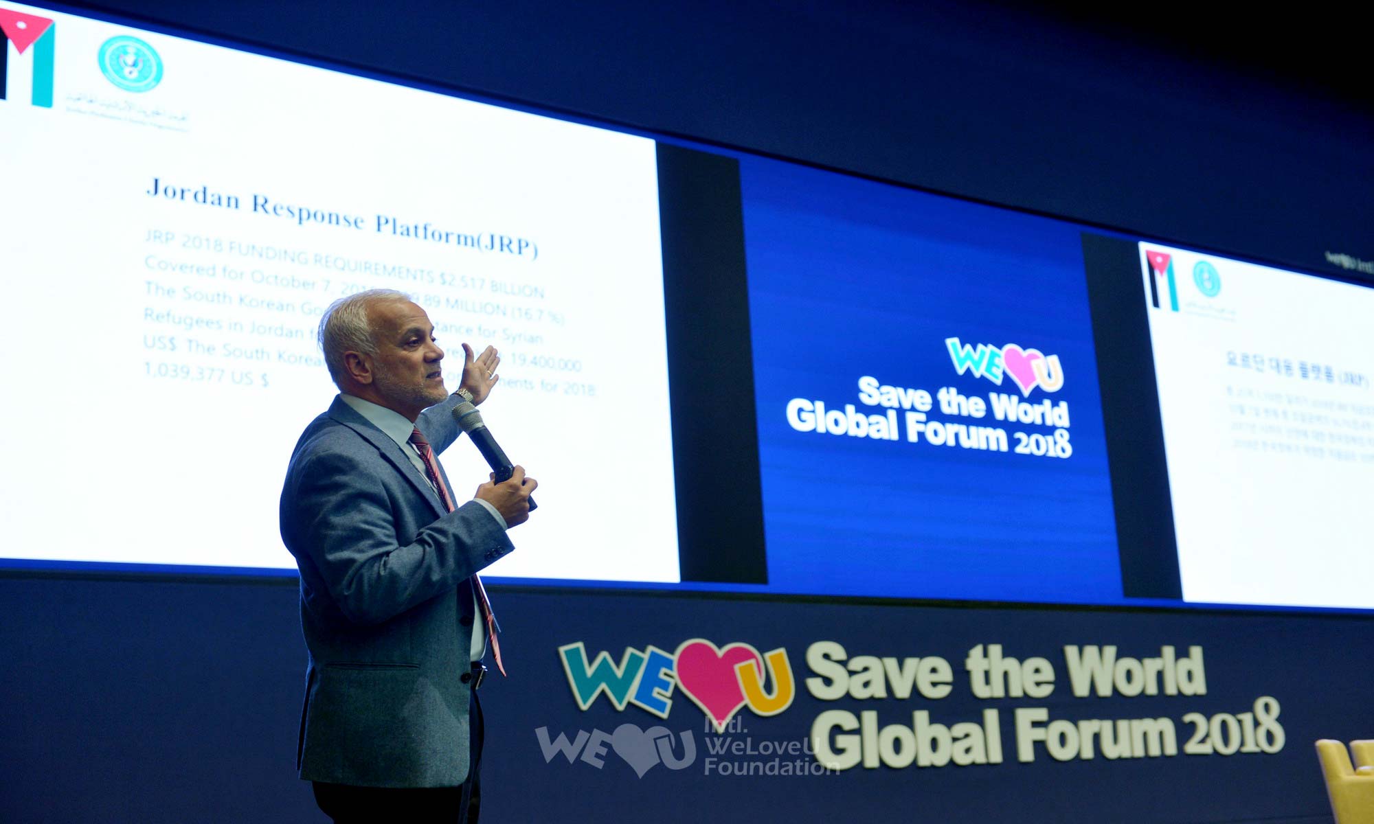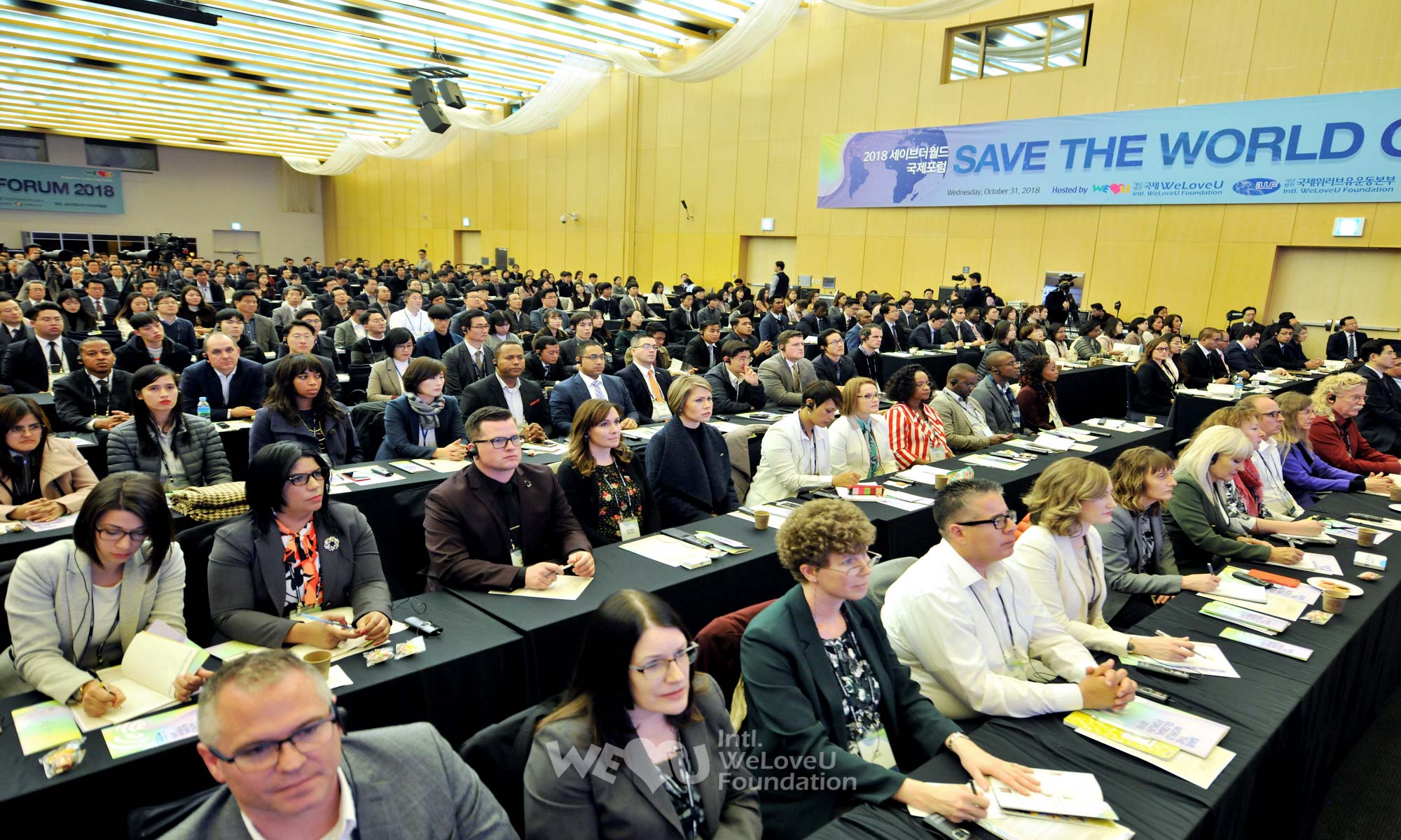 “Diễn đàn Quốc tế Save the World 2018” mà Quỹ WeLoveU Quốc tế tổ chức đã được mở tại Songdo Convensia, Incheon từ 1 giờ 30 phút chiều vào ngày 31 tháng 10. Diễn đàn được chuẩn bị để làm tăng ý thức người dân về cứu hộ khẩn cấp, tìm vai trò của NGO và phương án hành động, và thảo luận về việc tạo dựng quan hệ đối tác bền vững giữa cơ quan quốc tế, chính phủ, đoàn thể xã hội dân sự. Hơn 500 người đã tham dự, bao gồm đại sứ Jordan tại Hàn Quốc, nhà ngoại giao thuộc đại sứ quán Iraq, Việt Nam, Lào, Bangladesh, nhân viên NGO quốc tế và các tổ chức quốc tế, nhân viên các ngành nghề các nước như chính trường, tài chính, học thuật, ngành luật, ngành y v.v…