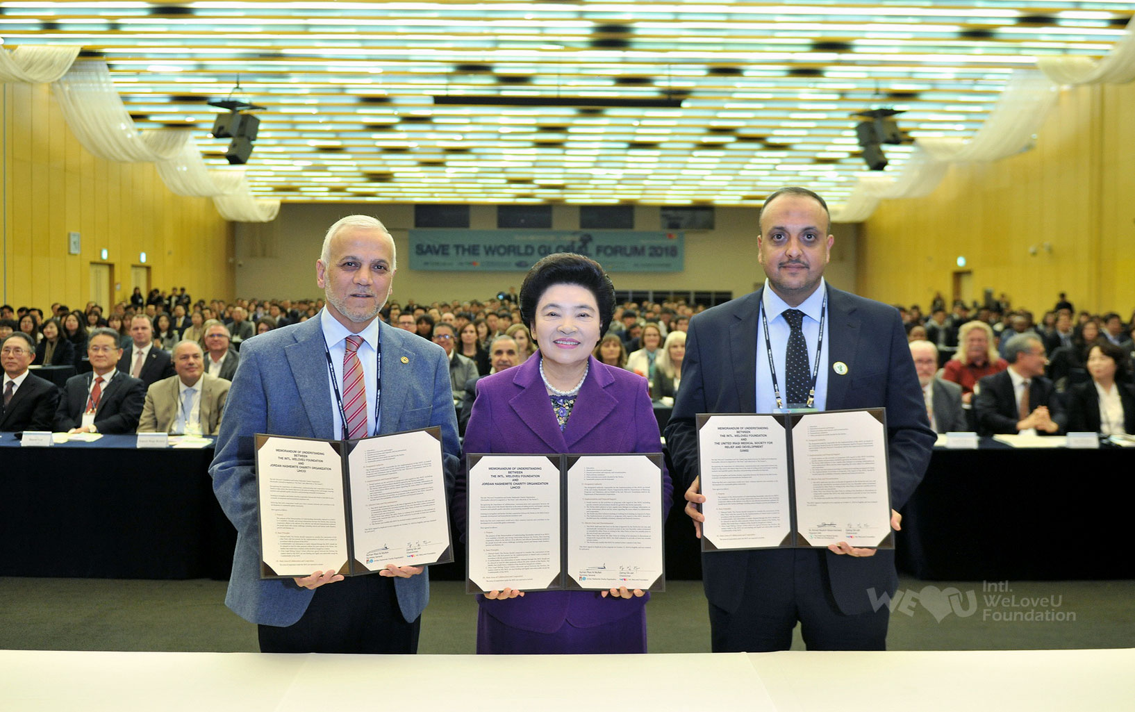 Vào ngày này, Quỹ WeLoveU ký kết Biên bản ghi nhớ (MOU) để hợp tác chi viện mang tính chủ nghĩa nhân đạo với Tổ chức từ thiện Jordan Hashemite (JHCO), Hiệp hội Y khoa Iraq (UIMS) vì sự phát triển cứu hộ. Các đoàn thể này đã từng hiệp lực với Quỹ WeLoveU để hoạt động cứu hộ người tị nạn trong nước do cuộc nội chiến Iraq và nạn nhân do chiến tranh Syria. Họ đang điều hành chương trình hỗ trợ đa dạng nhờ hiệp lực với tổ chức quốc tế như Cao ủy Liên Hiệp Quốc về người tị nạn (UNHCR), Quỹ Nhi đồng Liên Hợp quốc (UNICEF), Tổ chức Y tế Thế giới (WHO), Tổ chức phát triển Liên hợp quốc (UNDP) v.v…, nên có hy vọng sẽ đóng góp lớn trong hoạt động cứu hộ mang tính chủ nghĩa nhân đạo của Quỹ WeLoveU, là đoàn thể đang giúp đỡ thực tế và nhanh chóng bằng tấm lòng của mẹ cho nạn nhân và người tị nạn.