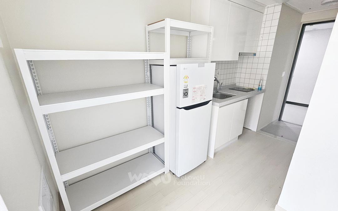 Đồ đạc chất đống trong căn phòng nhỏ sẽ cản trở luồng không khí, khiến cái nóng và cái lạnh trở nên tồi tệ hơn. Tủ chứa đồ đóng vai trò như “hơi thở của không gian” giúp mở rộng không gian sinh hoạt chật hẹp. WeLoveU đã hợp tác với Tòa thị chính Seoul và quyết định cung cấp “tủ chứa đồ tùy chỉnh” cho toàn bộ 182 hộ gia đình, để người dân có thể ổn định ở nhà mới.