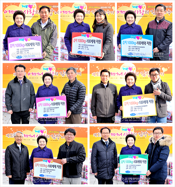 Chương trình “Chia sẻ kim chi tình yêu của Mẹ” của Tổ chức WeLoveU là sự kiện làm kim chi, vốn được gọi là “một nửa thực phẩm của mùa đông”, bằng tình yêu thương của mẹ và gửi đến những người hàng xóm đang chật vật trải qua mùa đông do hoàn cảnh khó khăn. Sự kiện lần này đánh dấu kỉ niệm lần thứ 13 của chương trình. Tại sự kiện, Chủ tịch danh dự Zahng Gil Jah, ban giám đốc và khoảng 300 hội viên đến từ khu vực Chungbuk và Gyeonggi đã tham gia bằng một tấm lòng nhằm chia sẻ tình yêu thương.