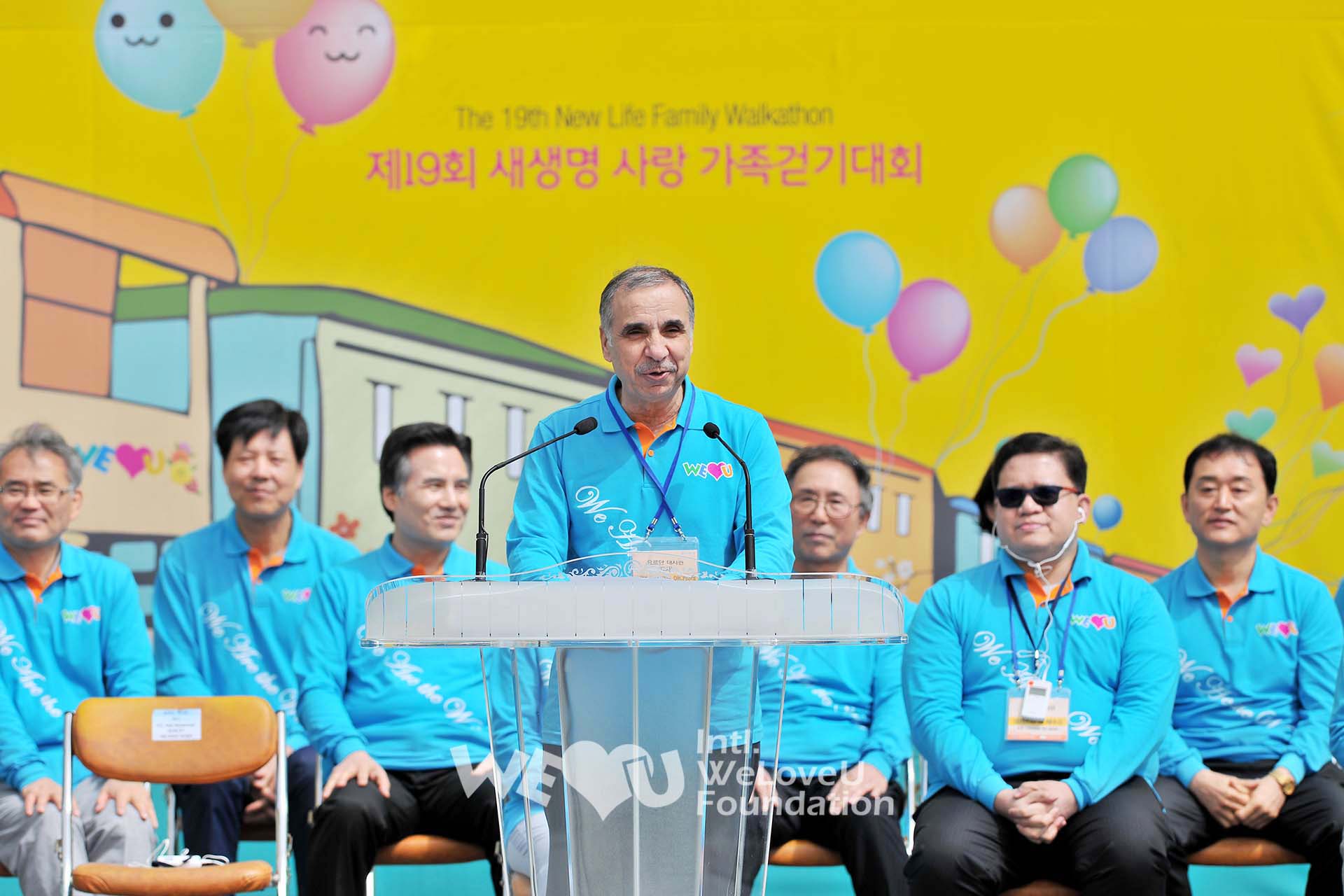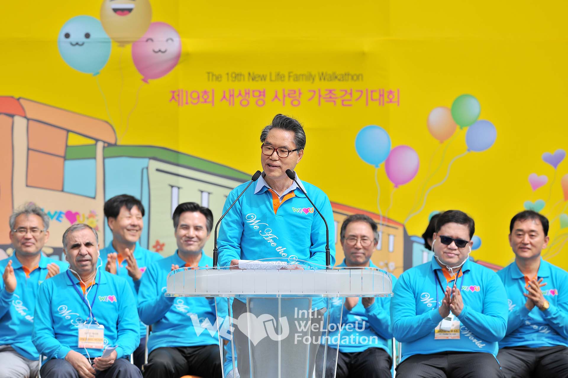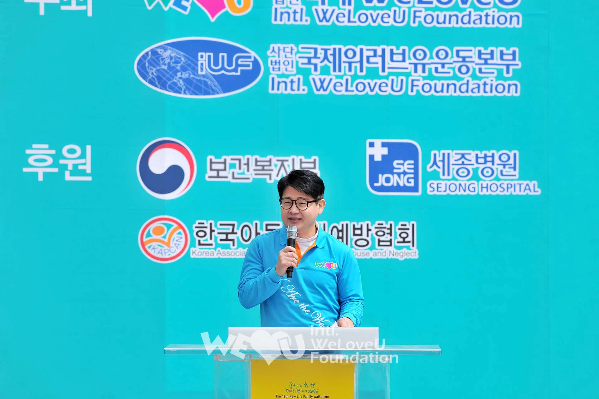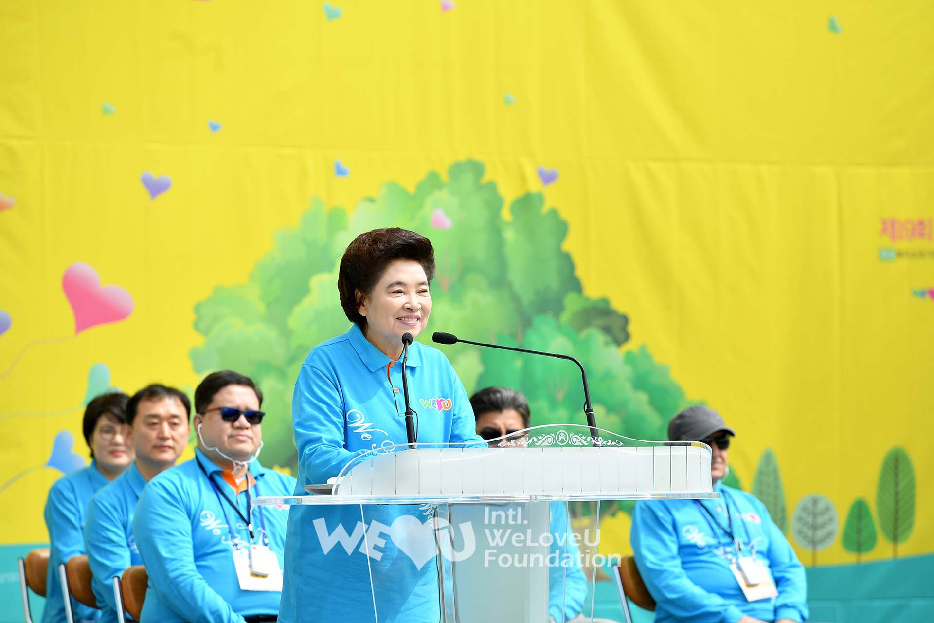 Yi Bae-Keun – Chủ tịch Hiệp hội phòng chống ngược đãi trẻ em Hàn Quốc đọc diễn văn chúc mừng rằng “Vào năm 2002 lúc Đại Hàn Dân Quốc vào vòng bán kết World Cup, Đại hội đi bộ của Quỹ WeLoveU chuyển bước chân đầu tiên trong lịch sử tại Namsan. Bước chân ấy được nối tiếp đến bây giờ và 205.000 người tham gia. Tôi xin bày tỏ lòng tôn trọng. Tôi tin rằng thời gian càng trôi qua thì tình yêu thương thuần khiết của các quý vị càng trở nên ngọn lửa không bao giờ bị tắt và sẽ chiếu khắp mọi nơi trên làng địa cầu. Mong sẽ đến ngày đầy dẫy ngọn đèn tình yêu thương của Quỹ WeLoveU trên khắp thế giới.”