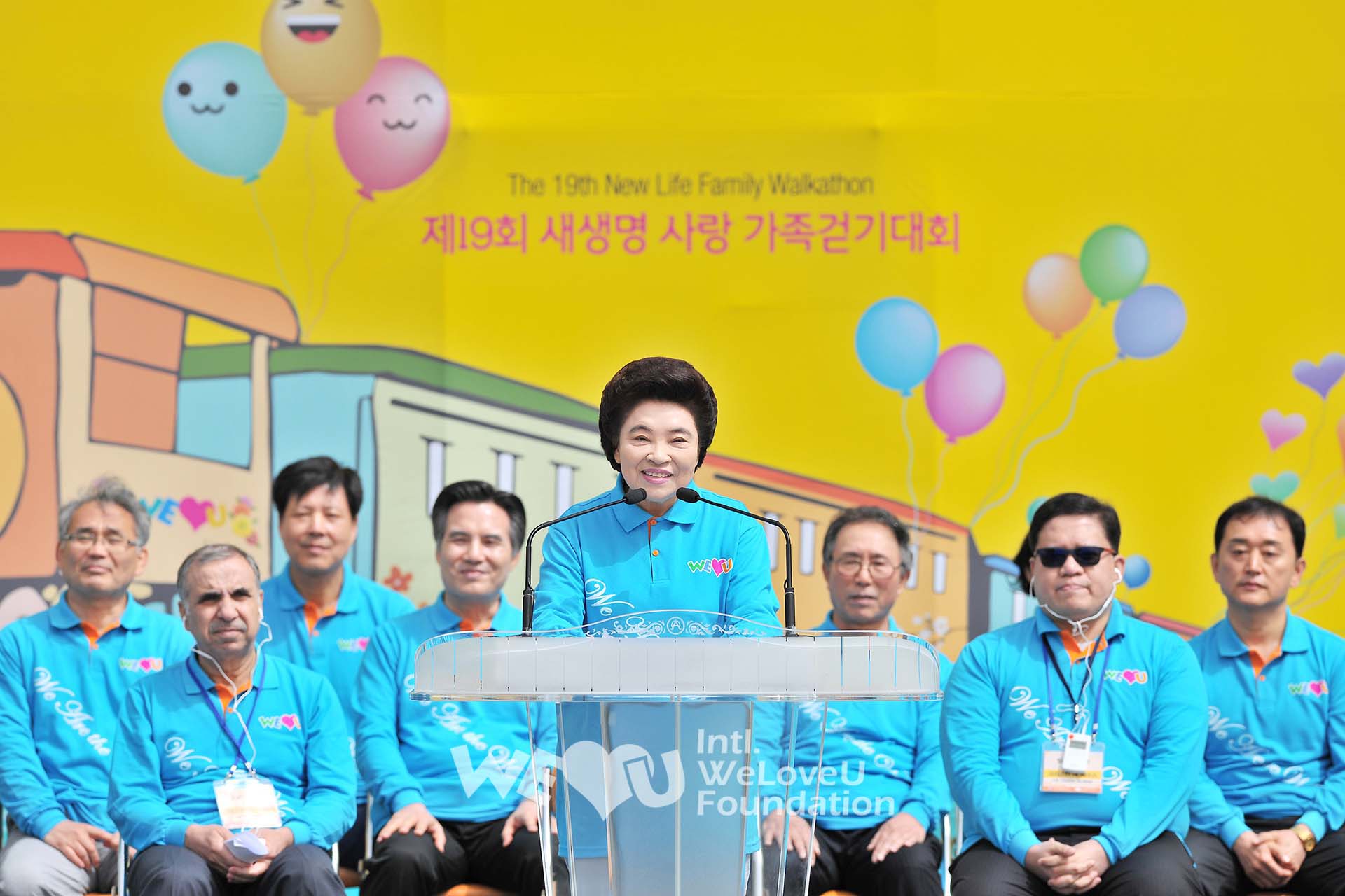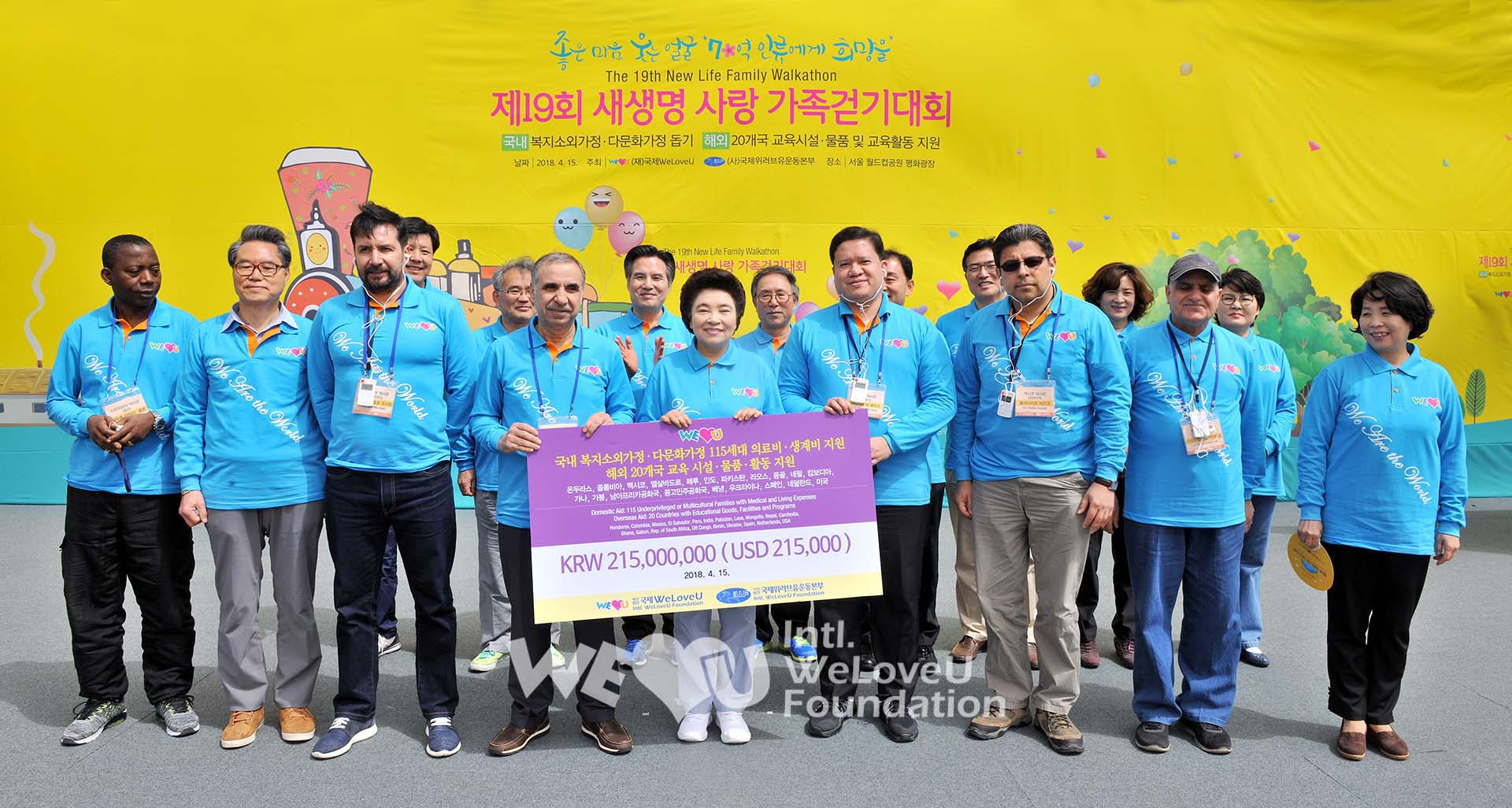 Vào ngày xuân mà sự sống mới được nảy mầm, Quỹ đặt bước chân tình yêu thương và chia sẻ cho 7 tỷ gia đình làng địa cầu lần nữa. Vào ngày 15 tháng 4 năm 2018, tại Quảng trường Pyeonghwa, Công viên Olympic, Seoul, Đại hội đi bộ gia đình yêu thương sự sống mới lần thứ 19 đã được tổ chức bởi Quỹ WeLoveU Quốc tế và được tài trợ bởi Bộ Y tế, tỉnh Gyeonggi, Bệnh viện Sejong, Hiệp hội phòng chống ngược đãi trẻ em Hàn Quốc. Đại hội lần này được tổ chức để chi viện hàng xóm khó khăn cần thiết sự giúp đỡ, và để cổ vũ tương lai của trẻ em và thanh thiếu niên ở 20 quốc gia nước ngoài.