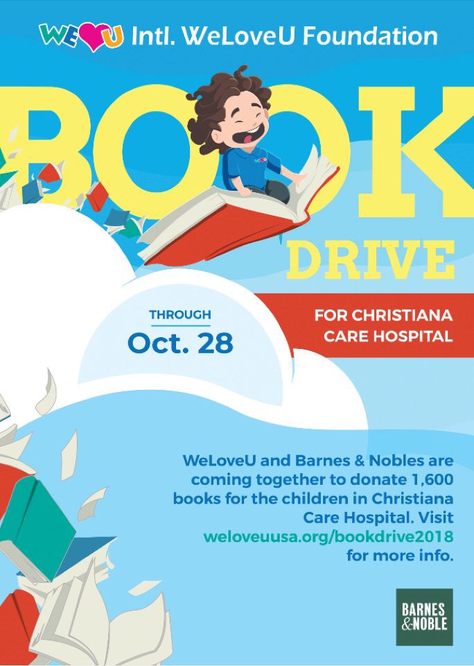 Trong vòng 3 tuần kể từ tháng 9 đến tháng 10, Quỹ WeLoveU nắm tay với hiệu sách “Barnes & Noble” và tổ chức chiến dịch quyên góp sách. Nhiều khách hàng gồm 250 hội viên mua & trao tặng sách bằng tấm lòng ấm áp. Ngày 19/10, Lễ trao tặng sách của Quỹ WeLoveU được tổ chức tại phòng khám ở Bệnh viện nhi Christiana. Vào ngày này, 45 hội viên tham gia và trao tặng 1.618 quyển sách thiếu nhi cho bệnh viện. Ngay lập tức, các trẻ em chọn sách mình muốn. Niềm vui được tràn đầy trên khuôn mặt của các trẻ em.