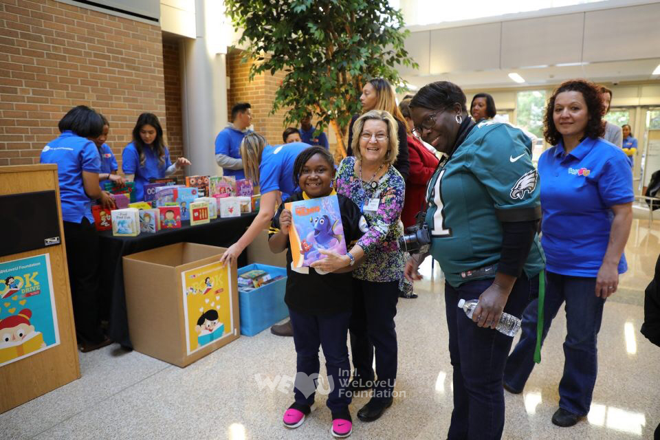 Các hội viên ở miền Đông, Mỹ chi viện sách cho các trẻ em ở Bệnh viện Christiana Care ở Wilmington, DE, Mỹ. Bệnh viện này hợp tác với Đoàn thể phúc lợi trẻ em Phi lợi nhuận “Reach Out and Read”, cung cấp sách và tổ chức chương trình đọc sách cho bệnh nhân nhi đồng từ 6 tháng tuổi đến 5 tuổi. Vì nhu cầu về sách thiếu nhi tăng lên ở bệnh viện nên Quỹ WeLoveU bắt đầu chi viện.